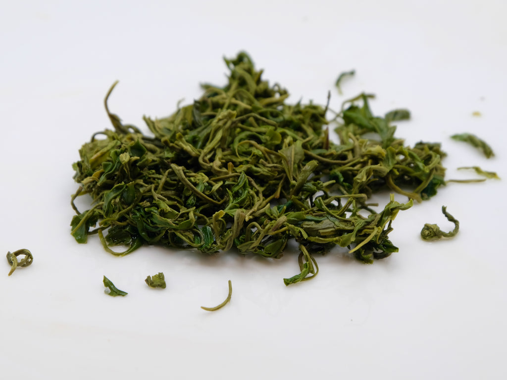 - Gong Fu - This tea works best in porcelain vessels. Semi porous clay will mute some of the tea's top notes. Since the leaf is small and curled, we recommend filling to about a third of the vessel with dry leaf. Try it grandpa style, where a little goes a long way and be ready to cinch those pants!